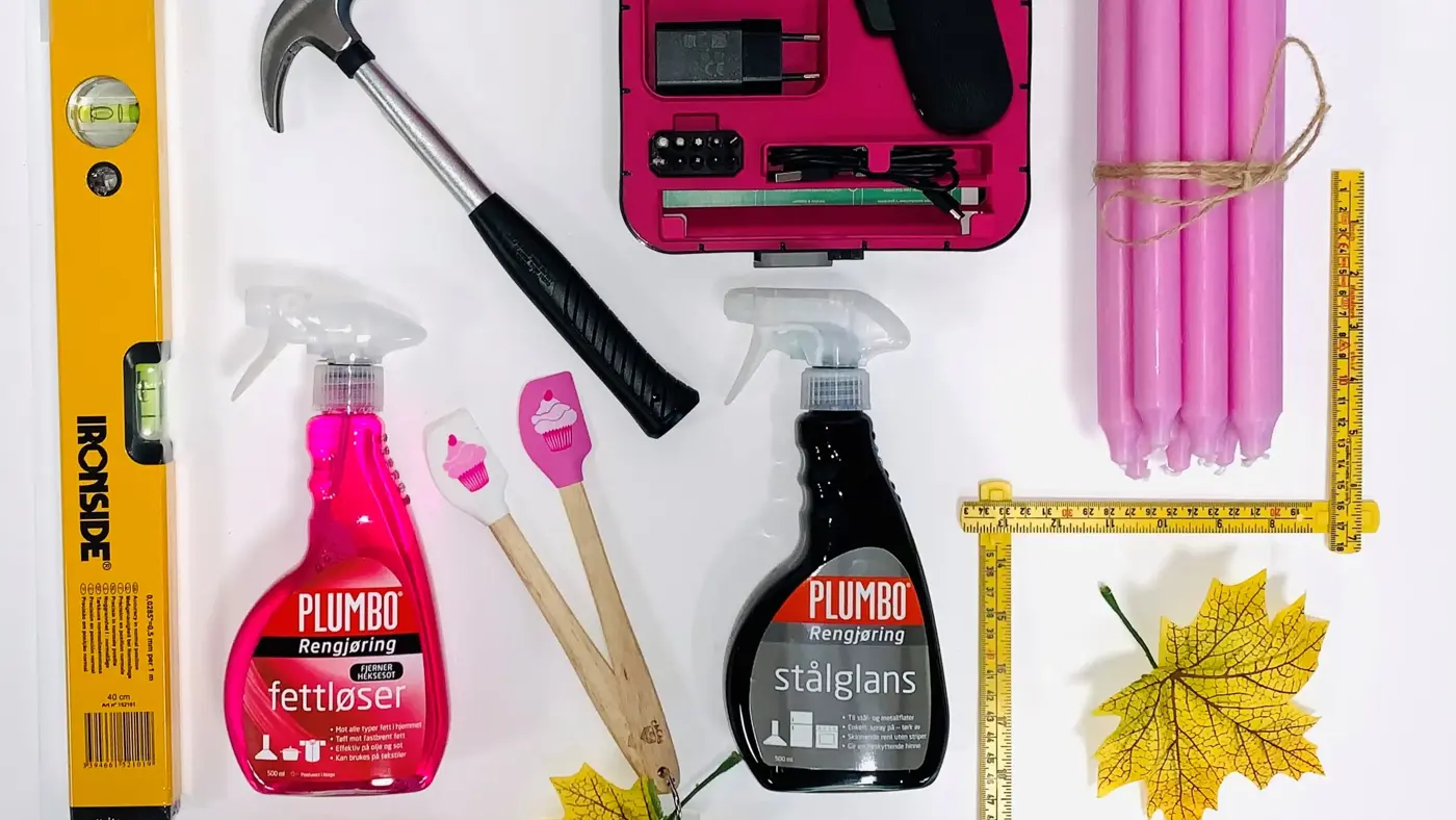 Ikke glem verktøy! Du vil trenge både hammer, målestokk, vater, skrutrekker med mer - alt dette finner hos Jernia Senter Syd