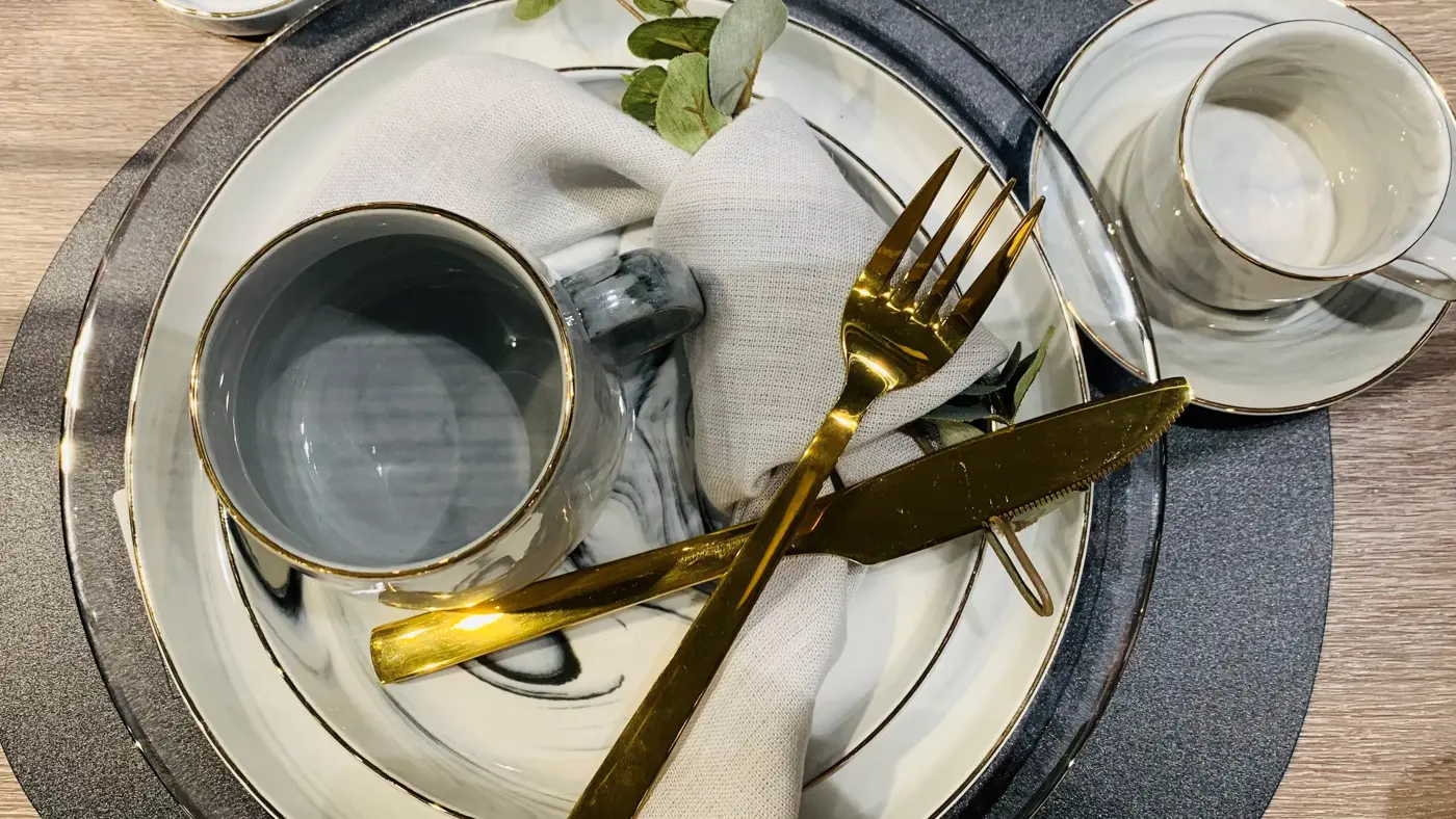 Et pent dekket bord er hyggelig, selv om man bare skal spise alene... Finn et servise du liker godt og begynn å ønske deg deler til jul og bursdager. Dette fra Tilbords heter Marmor og har bra priser. Bestikket heter Raw er i 16 deler og kommer i gull, sort eller rosegull. Alt fra Tilbords